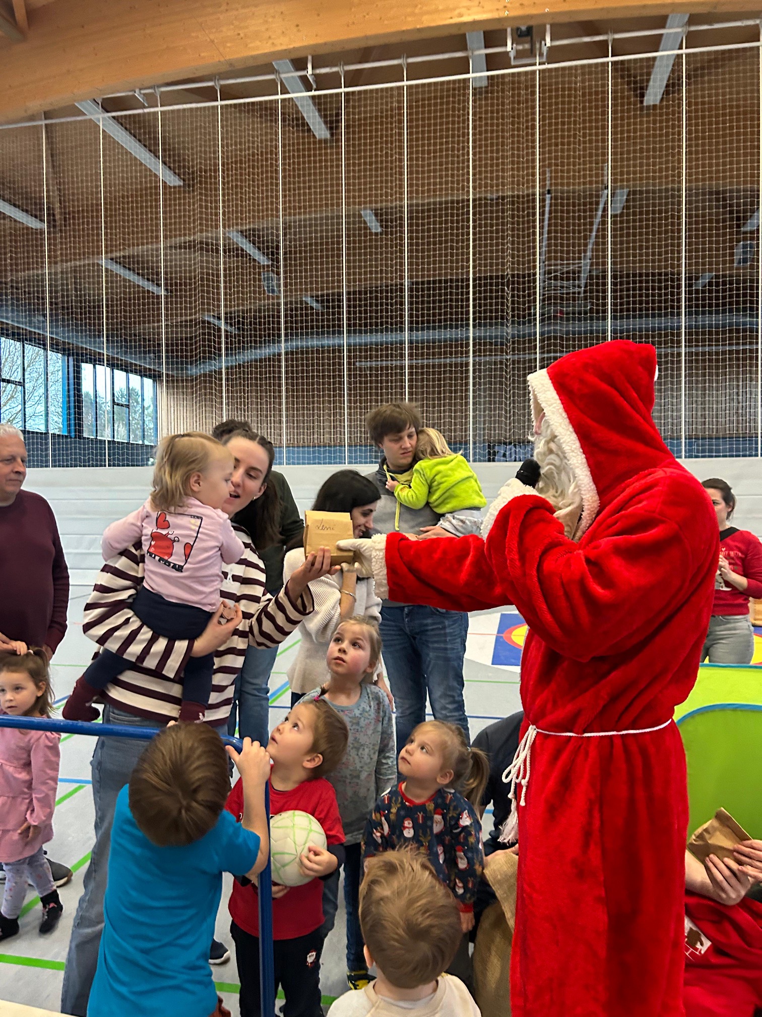 Danach folge der Übungsleiter Kurt Hartig mit seinen Jugendlichen und zeigte den Tischtennis-Sport an der Platte. Nach den turnerischen Übungen zog der Nikolaus in die Turnhalle ein und übergab – nach einem gemeinsamen Weihnachtslied – an alle Kinder ein Präsent. Die Übungsleiter/-innen ließen es sich nicht nehmen, zu dem schönen Abschluss noch eine Lichtbildaufnahme mit dem Nikolaus zu fertigen und ein großer Dank ging vom Veranstalter an die Eltern zu den vielen Kuchenspenden.